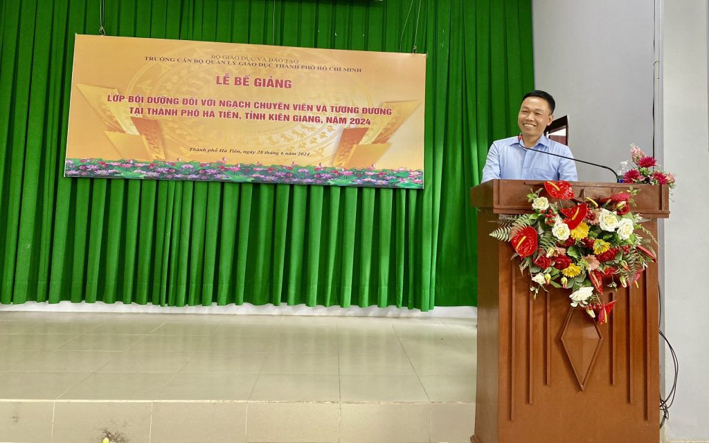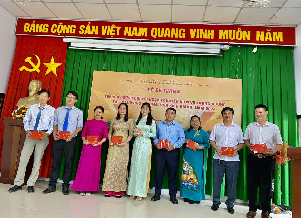 Ngày 28 tháng 6 năm 2024, tại Hội trường Trung tâm chính trị thành phố Hà Tiên, tỉnh Kiên Giang, đã diễn ra lễ bế giảng lớp Bồi dưỡng ngạch chuyên viên và tương đương do Trường Cán bộ quản lý giáo dục TP. Hồ Chí Minh tổ chức. Khóa học đã thu hút sự tham gia của gần 100 viên chức đến từ các cơ quan, đơn vị trên địa bàn thành phố Hà Tiên và các tỉnh lân cận.