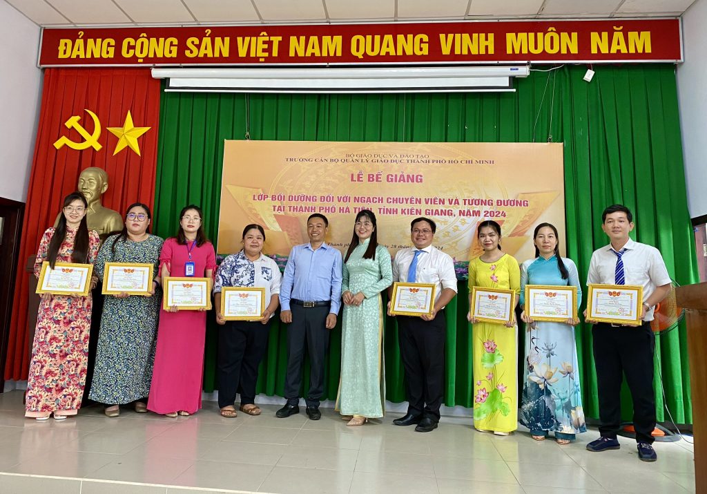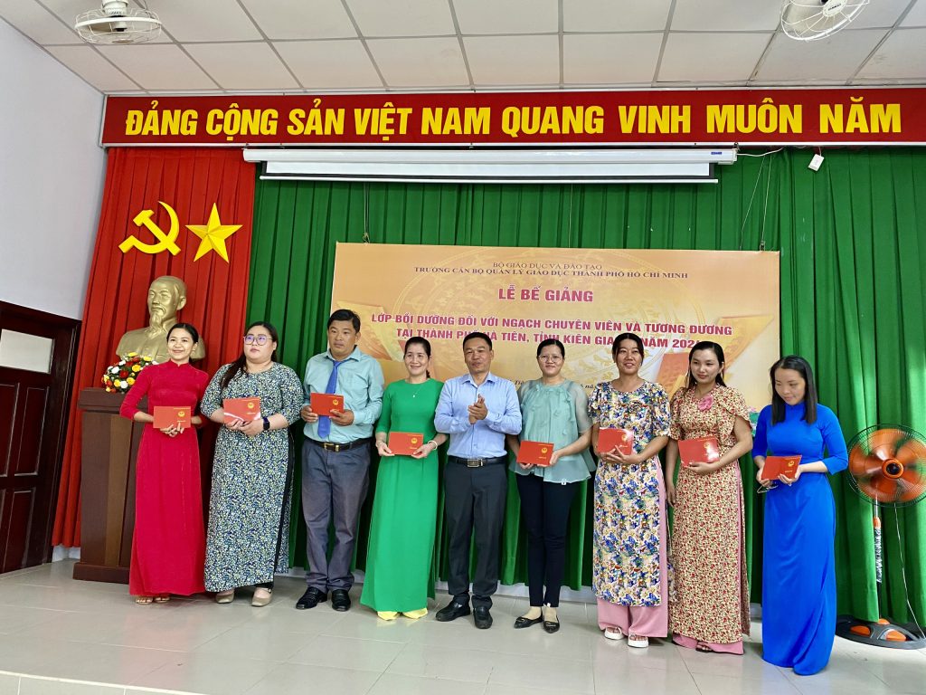 Lễ bế giảng lớp Bồi dưỡng đối với ngạch chuyên viên và tương đương do Trường Cán bộ quản lý giáo dục Thành phố Hồ Chí Minh tổ chức tại thành phố Hà Tiên