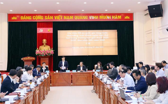 Ngày 5/3, Bộ Giáo dục và Đào tạo (GDĐT) tổ chức hội thảo góp ý dự thảo Đề án quốc gia “Từng bước đưa tiếng Anh thành ngôn ngữ thứ hai trong trường học” giai đoạn 2025-2035, tầm nhìn đến năm 2045. Thứ trưởng Phạm Ngọc Thưởng chủ trì hội thảo.