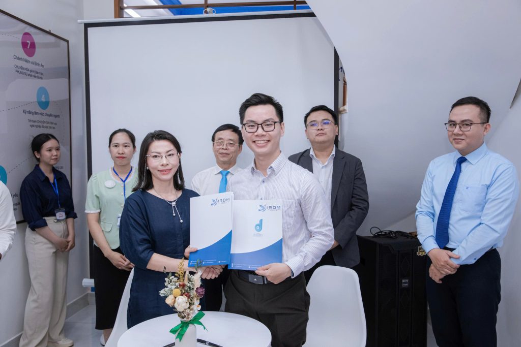 Cụ thể, IRDM đã hợp tác với Công ty cổ phần Công nghệ Teknix để phát triển tổ chức đào tạo và workshop nâng cao năng lực số. Với Công ty TNHH Công nghệ ODH, trọng tâm hợp tác là chuyển đổi số, triển khai các đề tài nghiên cứu khoa học trong lĩnh vực quản trị y tế. Sự hợp tác với Công ty cổ phần Công nghệ Doccen tập trung vào trao đổi kiến thức và chuyên gia, nghiên cứu y sinh ứng dụng AI. Công ty TNHH Liberal Leadership Organization (LLO) hợp tác để tổ chức các khóa học Trí tuệ – Cảm xúc, khai vấn nhóm, đào tạo kỹ năng và chia sẻ hướng nghiệp cho học viên của IRDM. Ngoài ra, Trung tâm Tâm lý Chuyên nghiệp WELink sẽ cung cấp dịch vụ chăm sóc sức khỏe tâm thần cho sinh viên bao gồm kiểm tra và tham vấn tâm lý cùng hợp tác nghiên cứu thực nghiệm hoặc triển khai các hoạt động thực tế liên quan đến tâm lý. IRDM cũng hợp tác cùng DSF Digital Skills Factory (UK) trong phát triển kỹ năng đào tạo.