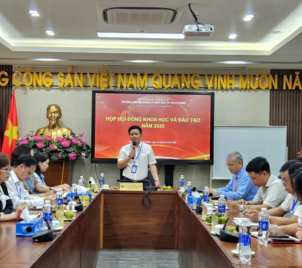 Ngày 22 tháng 10 năm 2025, Trường Cán bộ quản lý giáo dục Thành phố Hồ Chí Minh tổ chức Họp Hội đồng Khoa học và Đào tạo năm 2025 nhằm đánh giá kết quả hoạt động nghiên cứu, đào tạo và tư vấn cho Nhà trường về định hướng phát triển trong giai đoạn mới. TS. Vũ Quang – Hiệu trưởng, Chủ tịch Hội đồng chủ trì cuộc họp. Hội đồng gồm 11 thành viên là các nhà khoa học, nhà quản lý có nhiều kinh nghiệm trong lĩnh vực giáo dục và khoa học công nghệ.